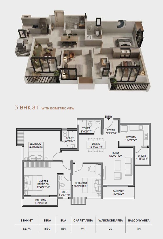 • 3 BHK 3T 1550 sq.ft.