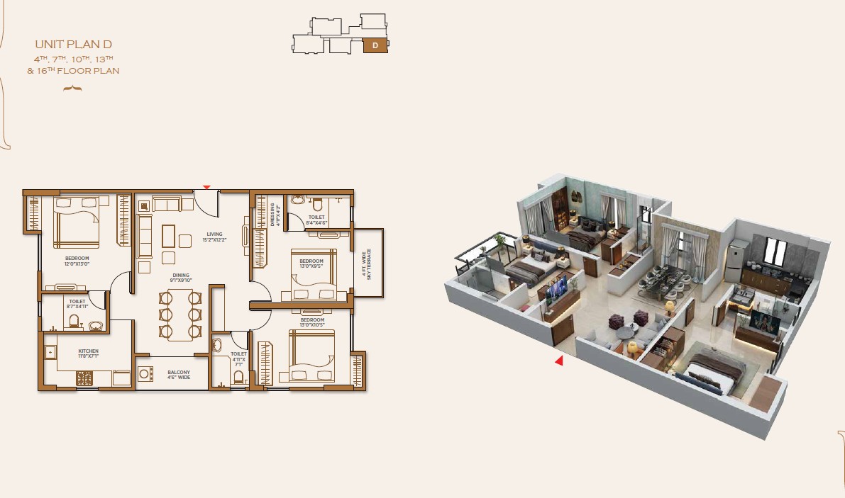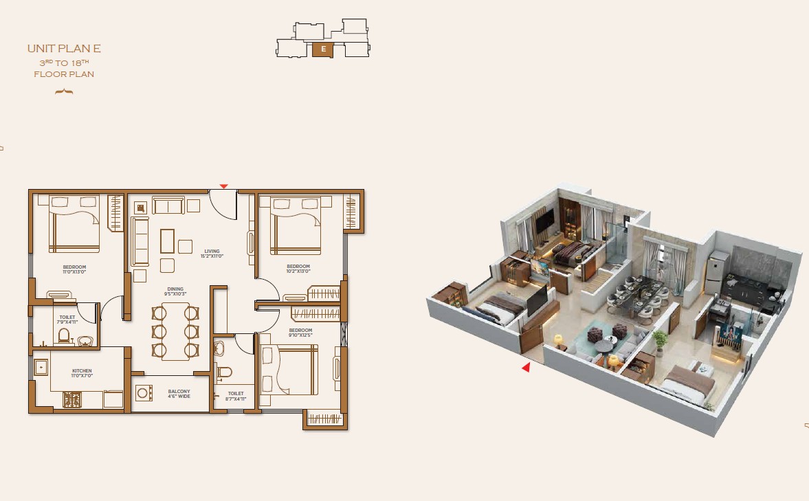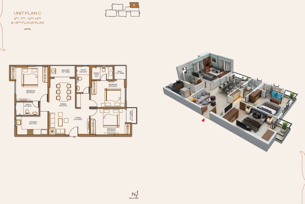 3 BHK 3T 1598 sq.ft. , 1617 sq.ft. (Super Built up Area)