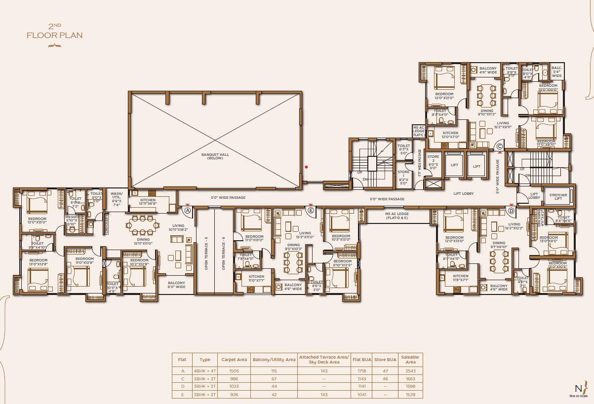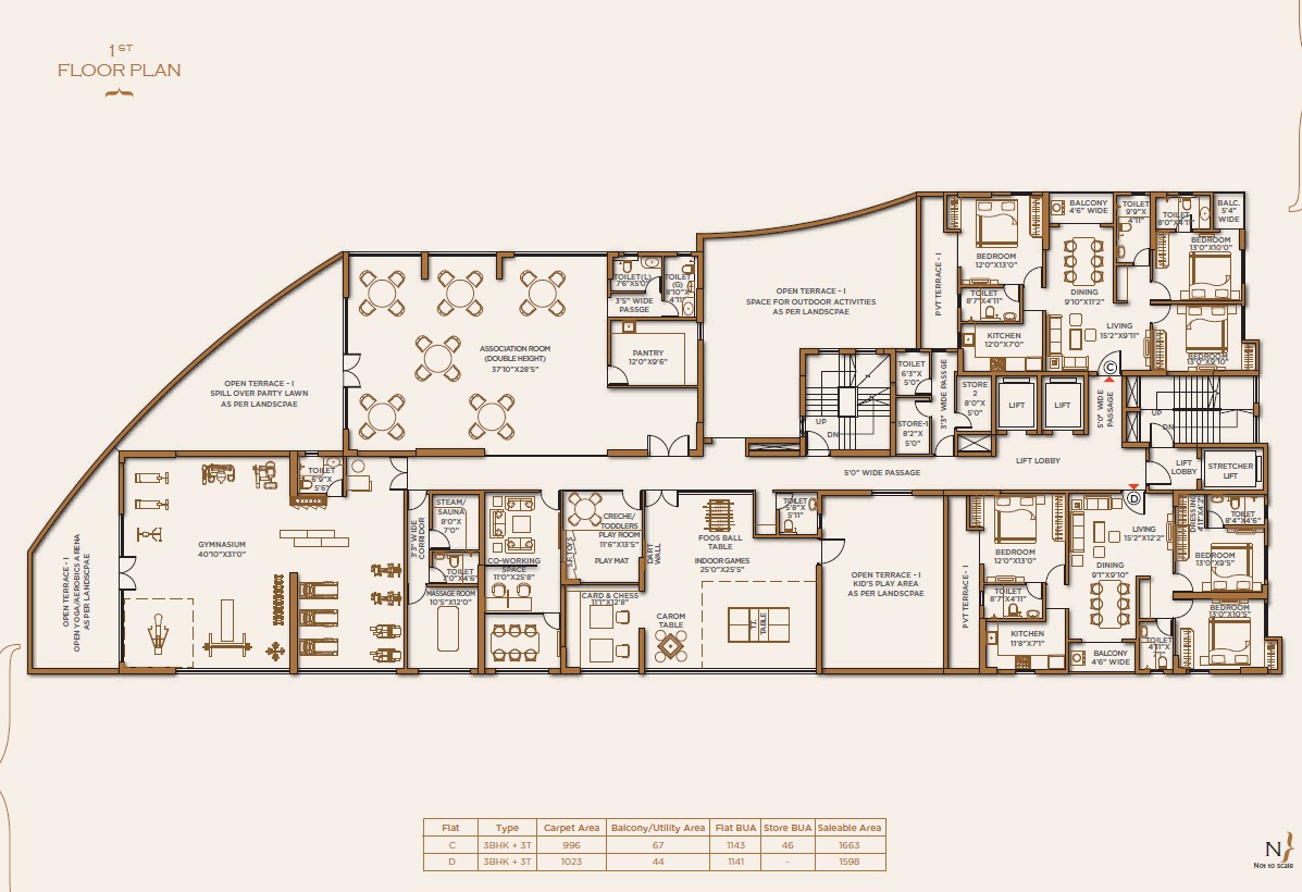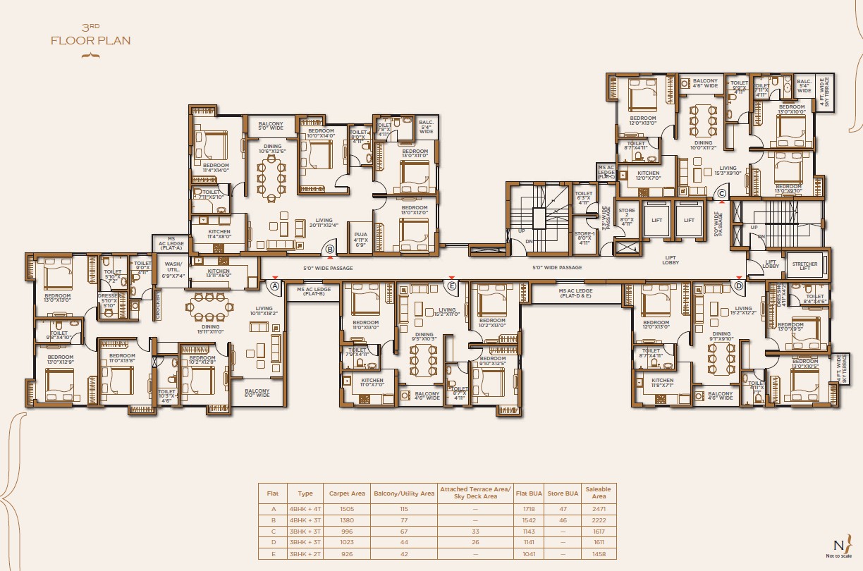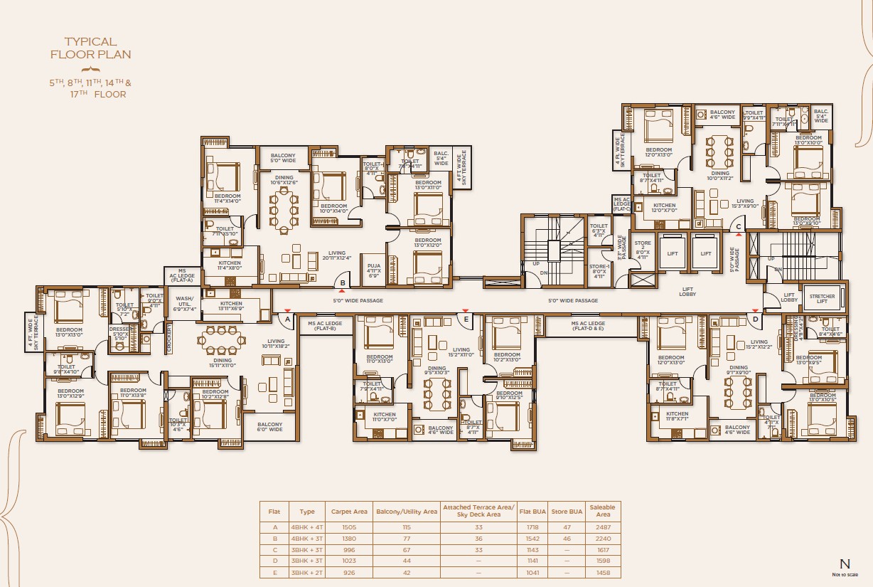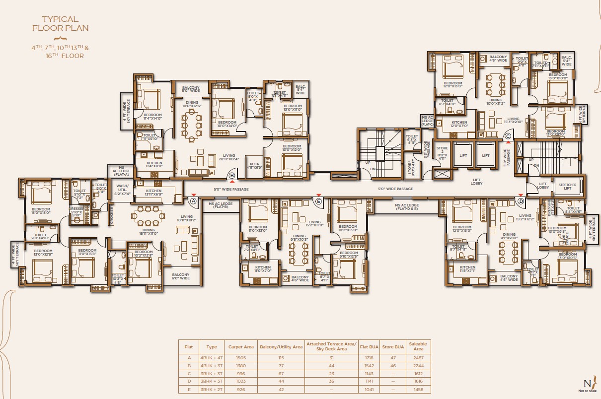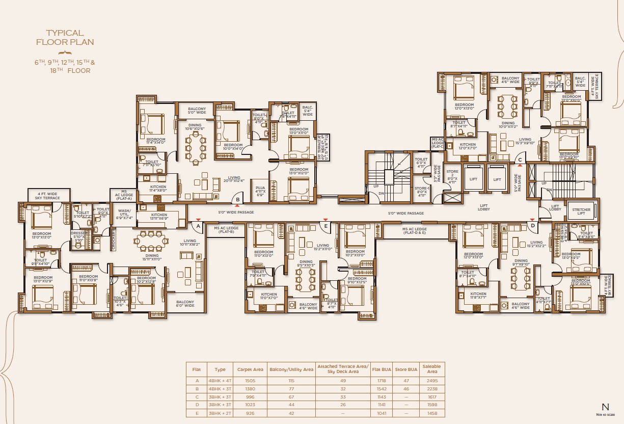 3bhk 2T -1458 sq.ft. 3bhk 3T-1598,1617 sq.ft. 4bhk 3T- 2238 sq.ft. 4bhk 4T-2495 sq.ft.