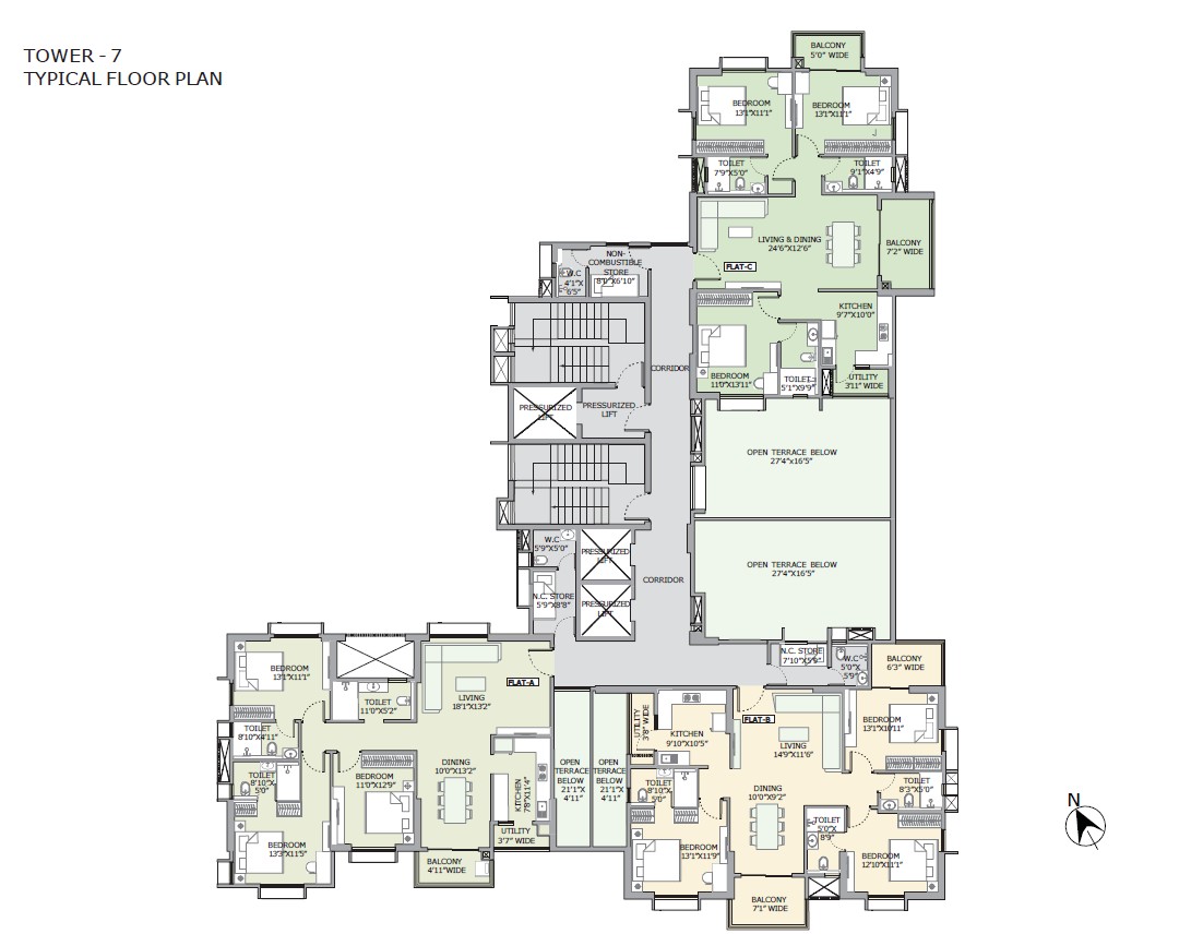 3bhk 3T -1917,1952,2057 sq.ft. 4bhk 4T- 2340,2548,3953 sq.ft. 5bhk (Duplex)- 3626 sq.ft.